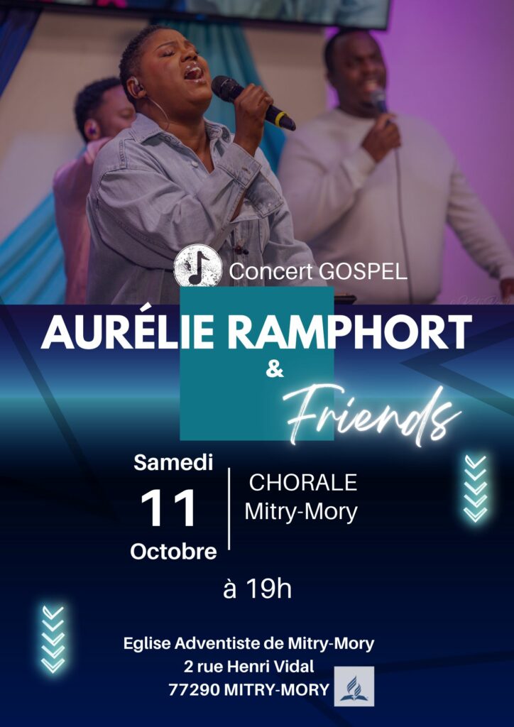L’Église adventiste du septième jour de Mitry-Mory a le plaisir de vous inviter à un Concert de Gospel avec l’invitée spéciale Aurélie Ramphort & Friends et la chorale de l’église, le samedi 11 octobre 2025 à 19h00, à l’Église adventiste de Mitry-Mory située au 2, rue Henri Vidal (77290 Mitry-Mory).