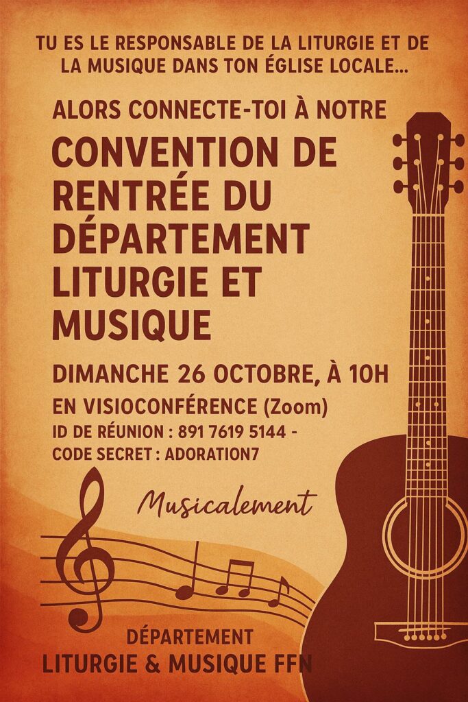 Que vous soyez responsable de la liturgie, chef de chorale, musicien ou simple passionné de louange, cette rencontre est pour vous.