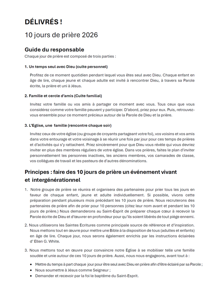 « DÉLIVRÉS ! – 10 jours de prière 2026 ».
