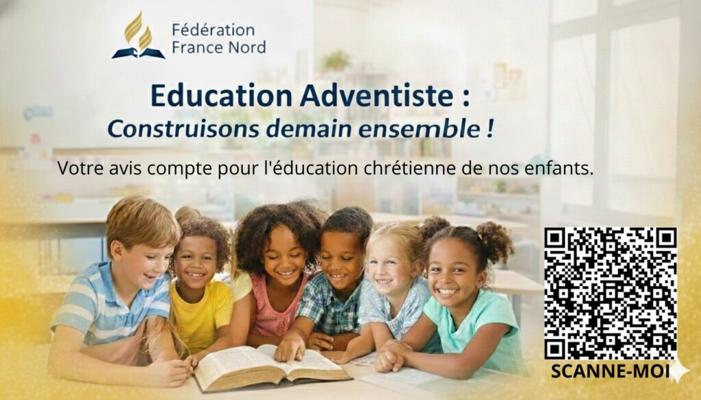 Il vous suffit de scanner le QR code présent sur l’affiche “Éducation Adventiste : Construisons demain ensemble !”. Votre contribution est précieuse : votre avis compte pour l’éducation chrétienne de nos enfants.