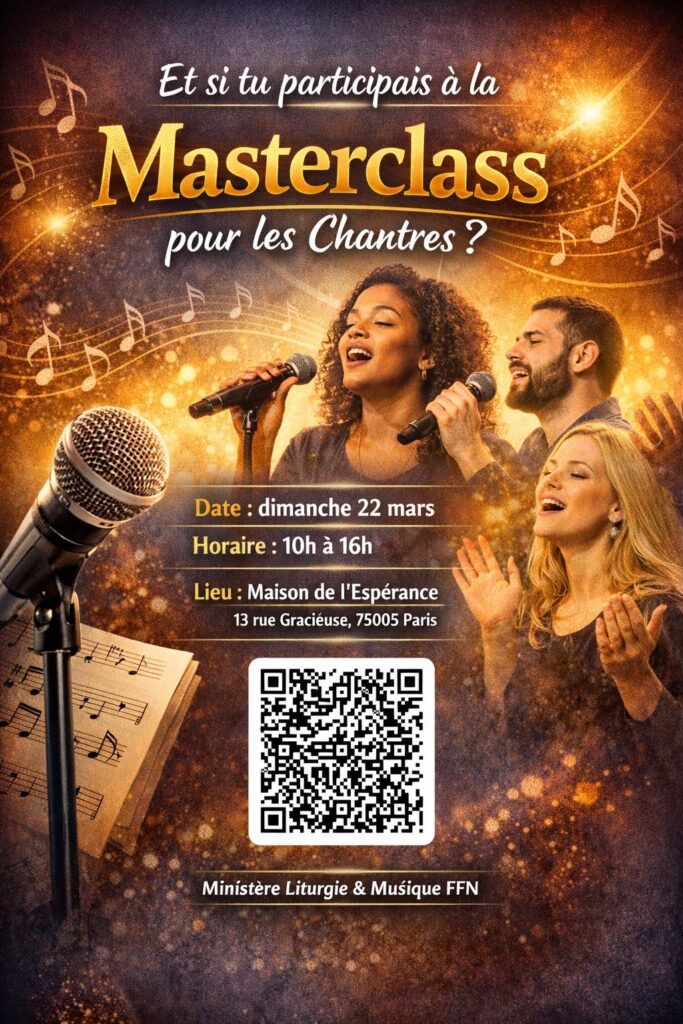 Envie de progresser dans ton ministère de chantre, de gagner en assurance, en justesse et en présence… tout en servant avec davantage de sens ? La Masterclass Chantres revient le dimanche 22 mars et les pré-inscriptions sont déjà ouvertes.