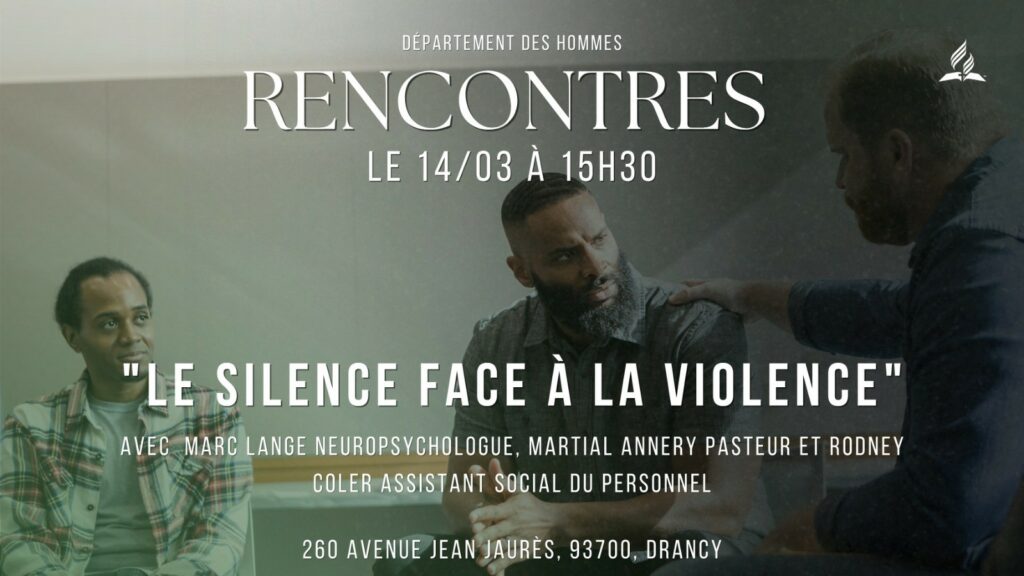 Le ministère des hommes vous donne rendez-vous à Drancy pour une rencontre ouverte à toutes et à tous autour d’un thème sensible et essentiel : « Le silence face à la violence ». Dans un cadre bienveillant, ce temps sera l’occasion de réfléchir ensemble, de mettre des mots sur des réalités parfois tues, et de chercher des pistes concrètes pour mieux comprendre, mieux accompagner, et mieux agir.