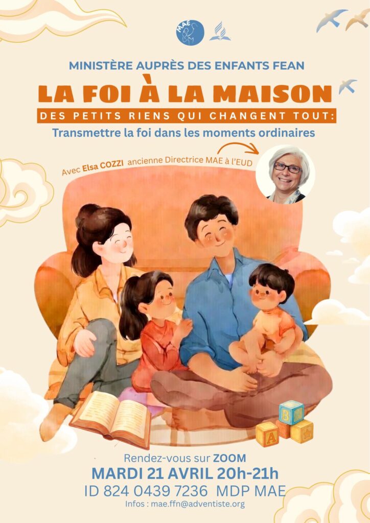 Le Ministère auprès des enfants FEAN (MAE FEAN) propose un nouveau rendez-vous en ligne à destination des familles, des responsables de ministère auprès des enfants et de toutes les personnes soucieuses de la transmission de la foi. Le mardi 21 avril 2026 à 20h, le 3e webinaire de l’année abordera un thème profondément concret et actuel : « La foi à la maison. Des petits riens qui changent tout : transmettre la foi à nos enfants dans les moments ordinaires ».