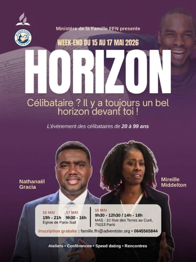 Le Ministère de la Famille de la Fédération Adventiste France Nord (FFN) donne rendez-vous aux célibataires pour un temps fort inédit avec HORIZON 2026, organisé du 15 au 17 mai 2026 à Paris. Pensé comme un événement de rencontre, de réflexion et d’encouragement, ce week-end veut rappeler un message simple et fort : « Célibataire ? Il y a toujours un bel horizon devant toi ! »