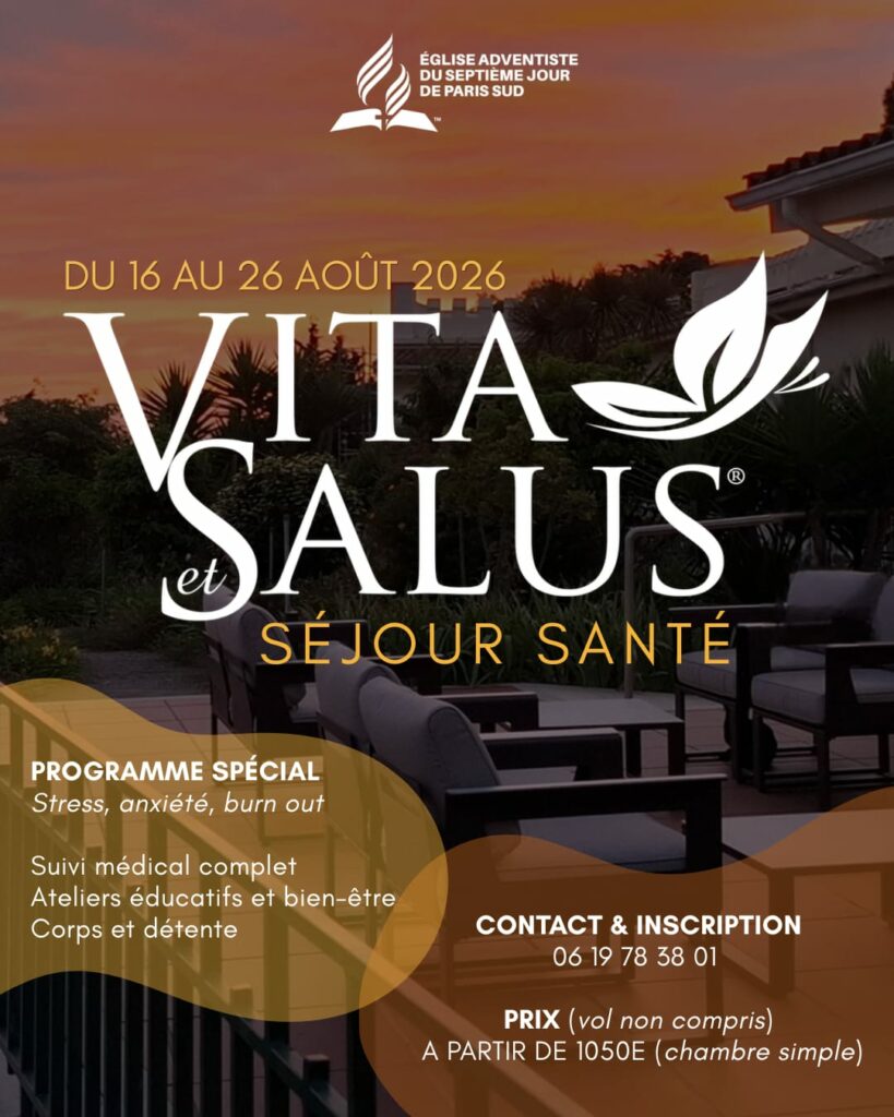 Du 16 au 26 août 2026, le Département Santé de l’église adventiste de Paris Sud propose un Séjour Santé au Portugal, au sein du Centre Vitasalus, pour offrir une parenthèse de repos, d’accompagnement et de ressourcement à toutes les personnes qui ressentent le besoin de faire une vraie pause.